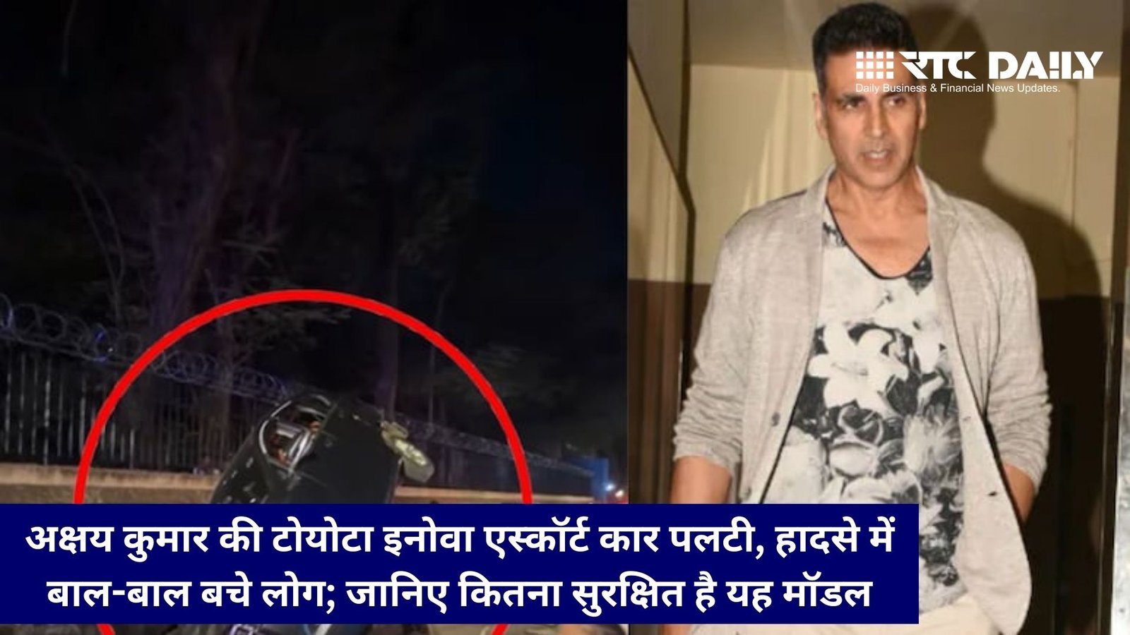 बॉलीवुड सुपरस्टार अक्षय कुमार की सुरक्षा एस्कॉर्ट कार एक बड़े हादसे का शिकार हो गई, जब अभिनेता अपनी पत्नी ट्विंकल खन्ना के साथ एयरपोर्ट से जुहू स्थित घर लौट रहे थे। रिपोर्ट्स के मुताबिक, हादसे के वक्त अक्षय कुमार उस वाहन में मौजूद नहीं थे।