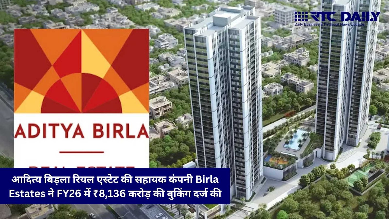 नई दिल्ली: आदित्य बिड़ला समूह की रियल एस्टेट कंपनी Aditya Birla Real Estate Ltd (ABREL) की पूर्ण स्वामित्व वाली सहायक कंपनी Birla Estates ने वित्त वर्ष 2025-26 (FY26) में मजबूत प्रदर्शन दर्ज किया है। कंपनी ने इस अवधि में ₹8,136 करोड़ की बुकिंग वैल्यू हासिल की, जो पिछले वर्ष के मुकाबले हल्की बढ़त दर्शाती है। साथ ही कंपनी की कलेक्शंस (Collections) में सालाना आधार पर 23.5% की वृद्धि दर्ज की गई।
