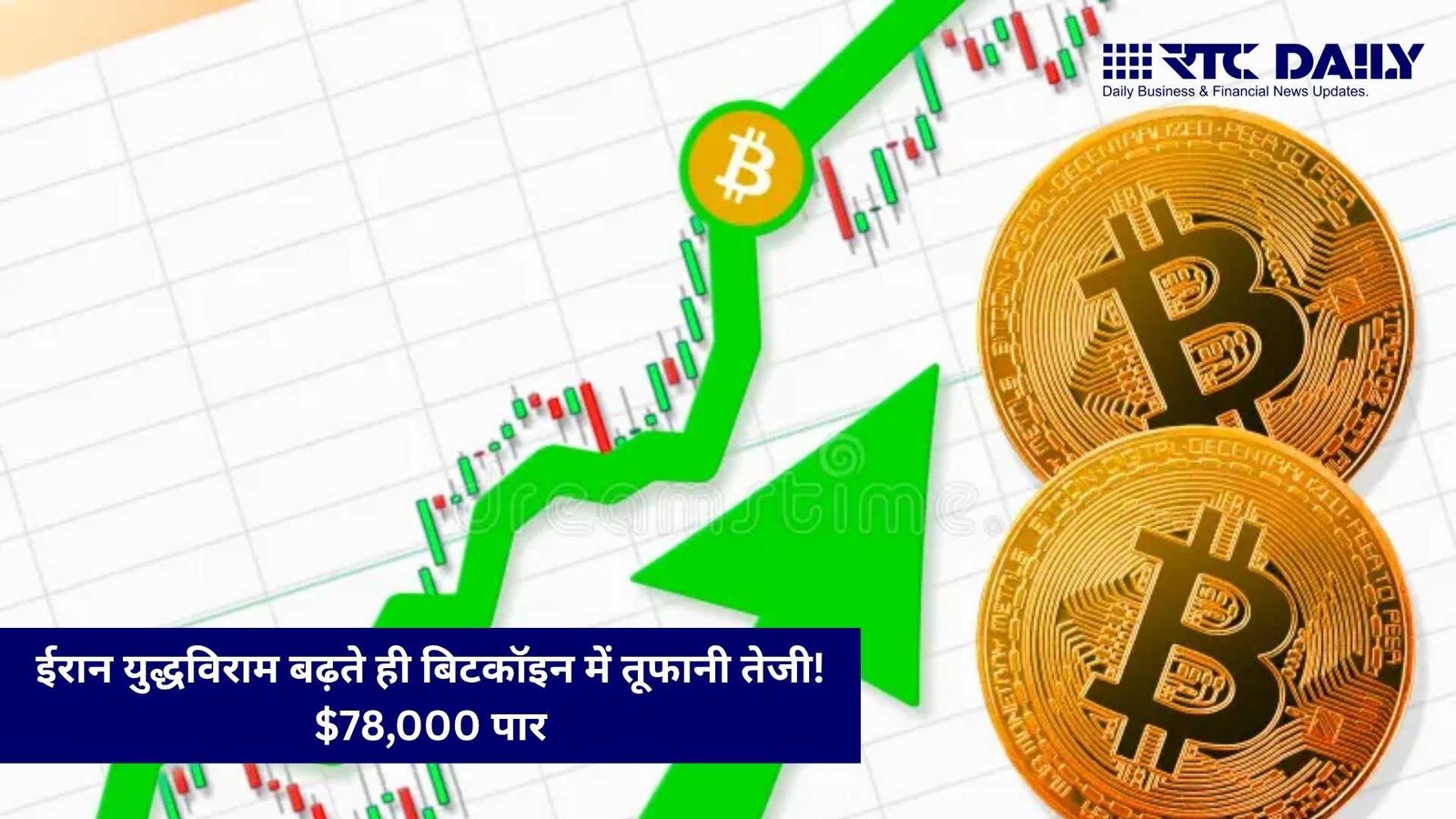 दुनिया की सबसे बड़ी क्रिप्टोकरेंसी Bitcoin में जोरदार तेजी देखने को मिली है। ईरान के साथ युद्धविराम बढ़ाए जाने की खबर और बड़े संस्थागत निवेशकों की खरीदारी के बाद बिटकॉइन $78,000 के ऊपर पहुंच गया। कारोबार के दौरान यह $79,000 के करीब भी पहुंचा, जो फरवरी के बाद सबसे ऊंचा स्तर माना जा रहा है।