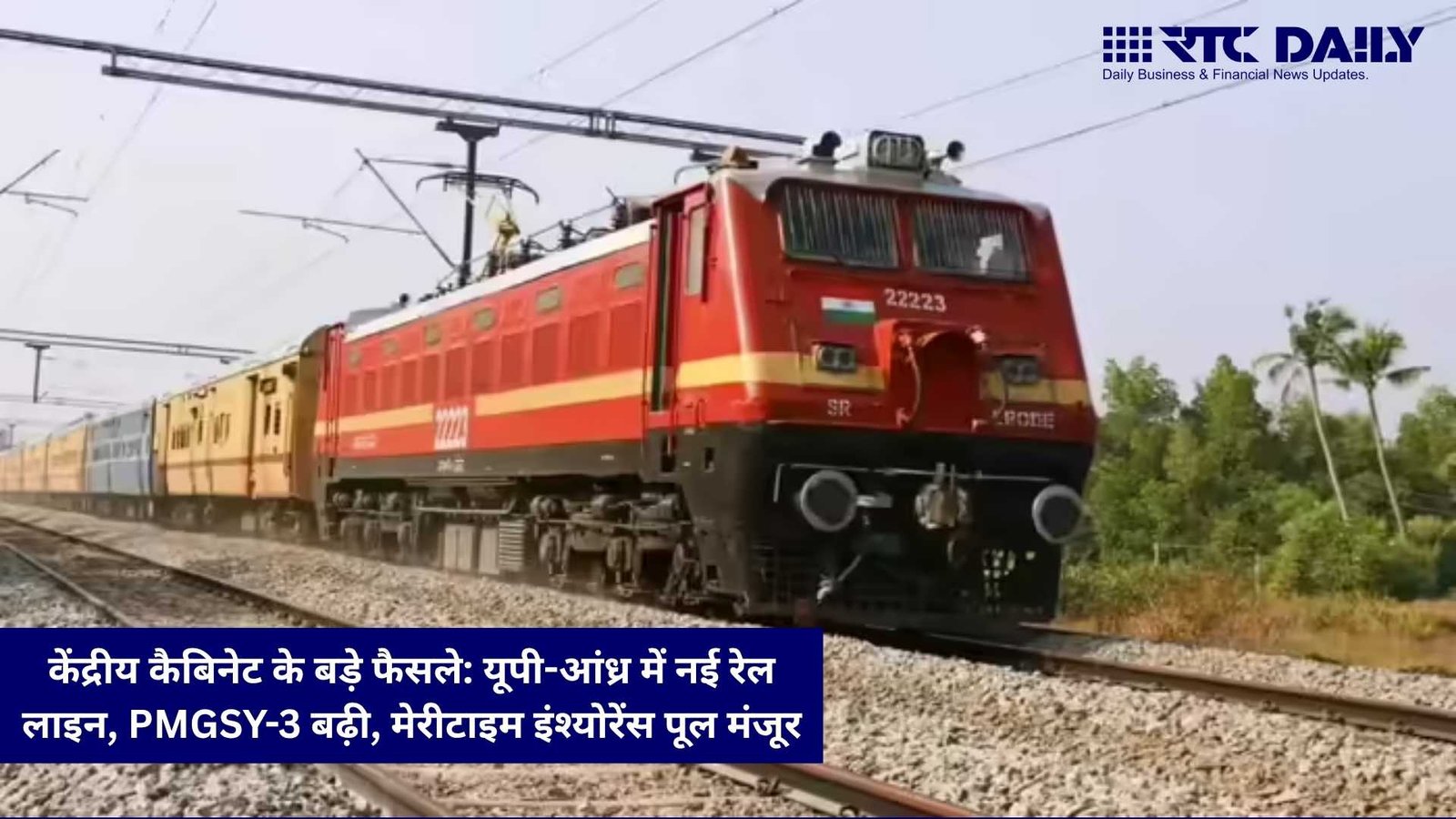 नई दिल्ली: प्रधानमंत्री नरेंद्र मोदी की अध्यक्षता में हुई केंद्रीय मंत्रिमंडल बैठक में देश के इंफ्रास्ट्रक्चर, ग्रामीण विकास और समुद्री व्यापार से जुड़े कई बड़े फैसले लिए गए। सरकार ने उत्तर प्रदेश और आंध्र प्रदेश में दो प्रमुख रेलवे परियोजनाओं, प्रधानमंत्री ग्राम सड़क योजना-3 (PMGSY-3) की अवधि बढ़ाने और भारत मेरीटाइम इंश्योरेंस पूल बनाने को मंजूरी दी।