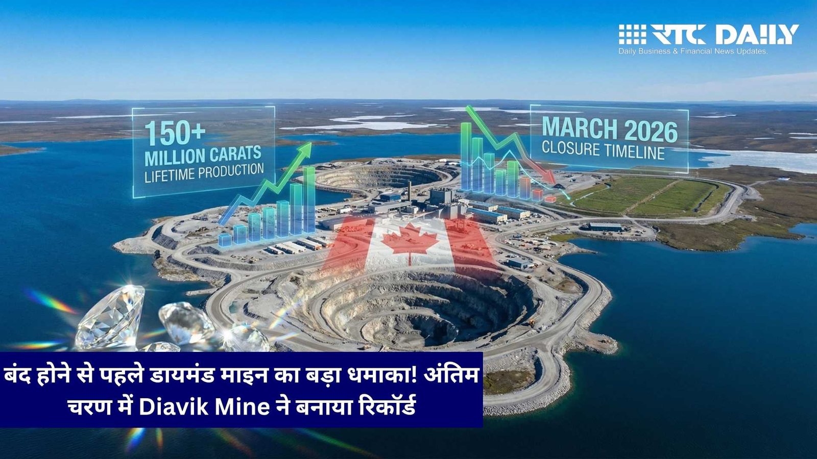 दुनिया की चर्चित हीरा खदानों में शामिल कनाडा की Diavik Diamond Mine ने बंद होने से पहले बड़ा रिकॉर्ड बनाया है। खदान ने अपने अंतिम उत्पादन चरण में शानदार प्रदर्शन करते हुए हीरा उत्पादन में नया मुकाम हासिल किया। 23 वर्षों तक लगातार संचालन के बाद अब यह ऐतिहासिक खदान 2026 में उत्पादन बंद कर रही है।