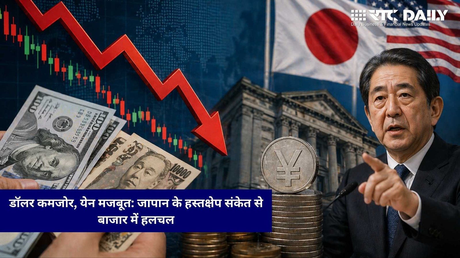 टोक्यो/न्यूयॉर्क: वैश्विक मुद्रा बाजार में बड़ा उतार-चढ़ाव देखने को मिल रहा है। अमेरिकी डॉलर जापानी येन के मुकाबले कमजोर पड़ गया है, क्योंकि जापान के अधिकारियों ने संभावित करेंसी इंटरवेंशन (हस्तक्षेप) के संकेत दिए हैं। इस खबर के बाद फॉरेक्स मार्केट में तेज हलचल देखी गई।
