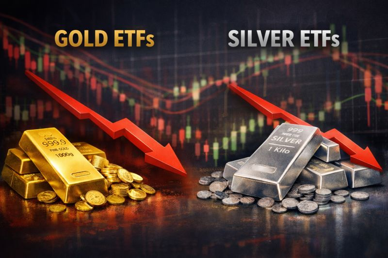 30 जनवरी को ट्रेडिंग के दौरान गोल्ड और सिल्वर एक्सचेंज ट्रेडेड फंड्स (ETFs) में भारी गिरावट देखने को मिली, क्योंकि रिकॉर्ड तेजी के बाद कीमती धातुओं की कीमतों में तेज करेक्शन आया।