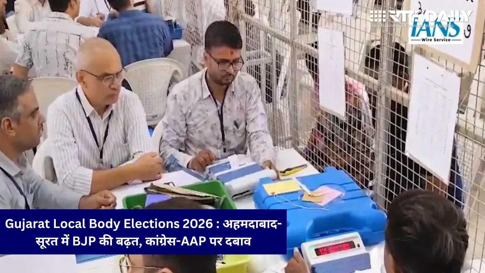 गुजरात निकाय चुनाव 2026 के शुरुआती रुझान BJP के पक्ष में दिखाई दे रहे हैं। अहमदाबाद और सूरत जैसे बड़े शहरों में पार्टी की बढ़त ने विपक्ष की चिंता बढ़ा दी है। अब सबकी नजर अंतिम नतीजों पर है।