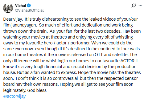 • Vishal ने इसे “निराशाजनक” बताते हुए कहा कि पूरी टीम की मेहनत बर्बाद हो गई।