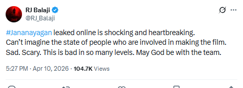 • RJ Balaji ने इसे “दिल तोड़ने वाली घटना” बताया।