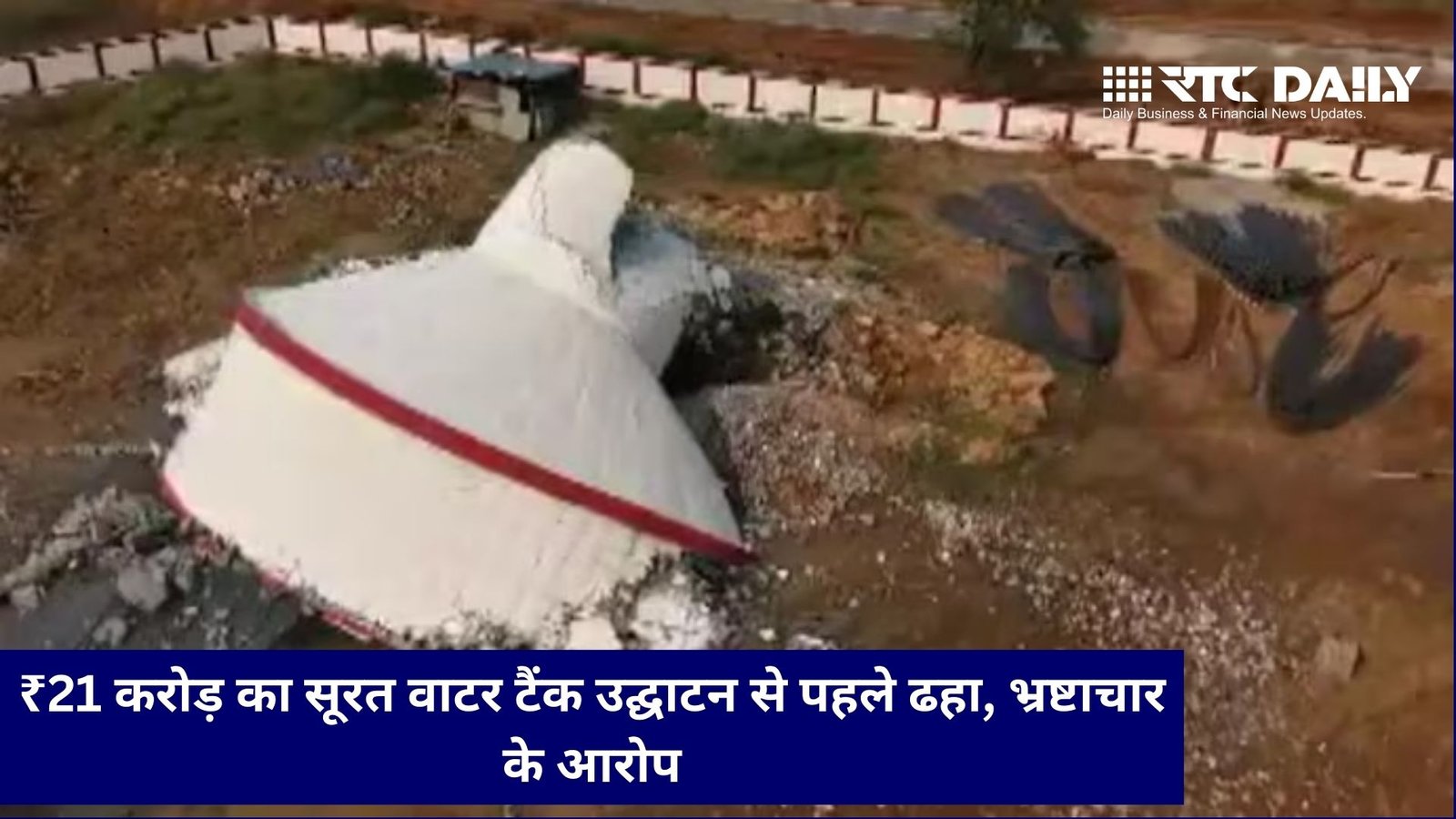 गुजरात के सूरत जिले में 33 गांवों को पीने का पानी सप्लाई करने के लिए बनाए गए प्रोजेक्ट को बड़ा झटका लगा है। ₹21 करोड़ की लागत से बना एक पानी का टैंक उद्घाटन से पहले ही ढह गया, जिससे निर्माण की गुणवत्ता और भ्रष्टाचार को लेकर गंभीर सवाल खड़े हो गए हैं।