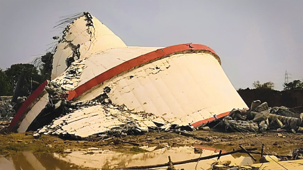 यह घटना मांडवी तालुका के तडकेश्वर गांव में राज्य की “गायपगला ग्रुप वाटर सप्लाई स्कीम” के तहत बने वाटर टैंक में हुई। 15 मीटर ऊंचा और 11 लाख लीटर क्षमता वाला यह टैंक 19 जनवरी को ट्रायल के दौरान अचानक ढह गया, जिससे इलाके में अफरा-तफरी मच गई।