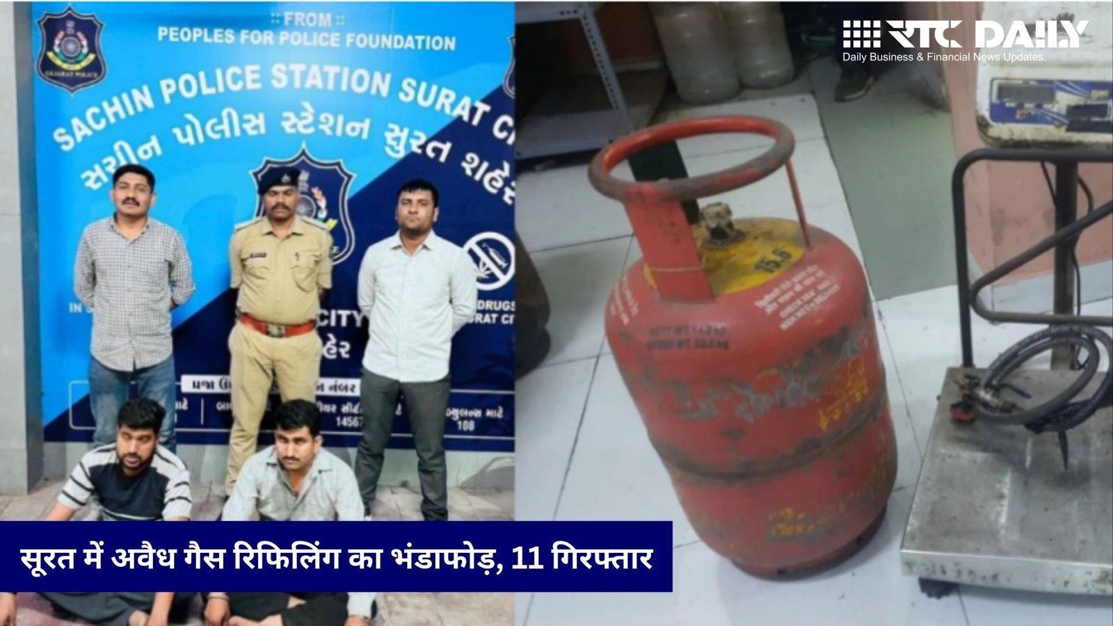 सूरत के सचिन और भेस्तान इलाके में चल रहे अवैध गैस रिफिलिंग के काले कारोबार का पुलिस ने भंडाफोड़ किया है। पुलिस ने एक साथ सर्च ऑपरेशन चलाकर 11 लोगों को रंगेहाथ गिरफ्तार किया है।
