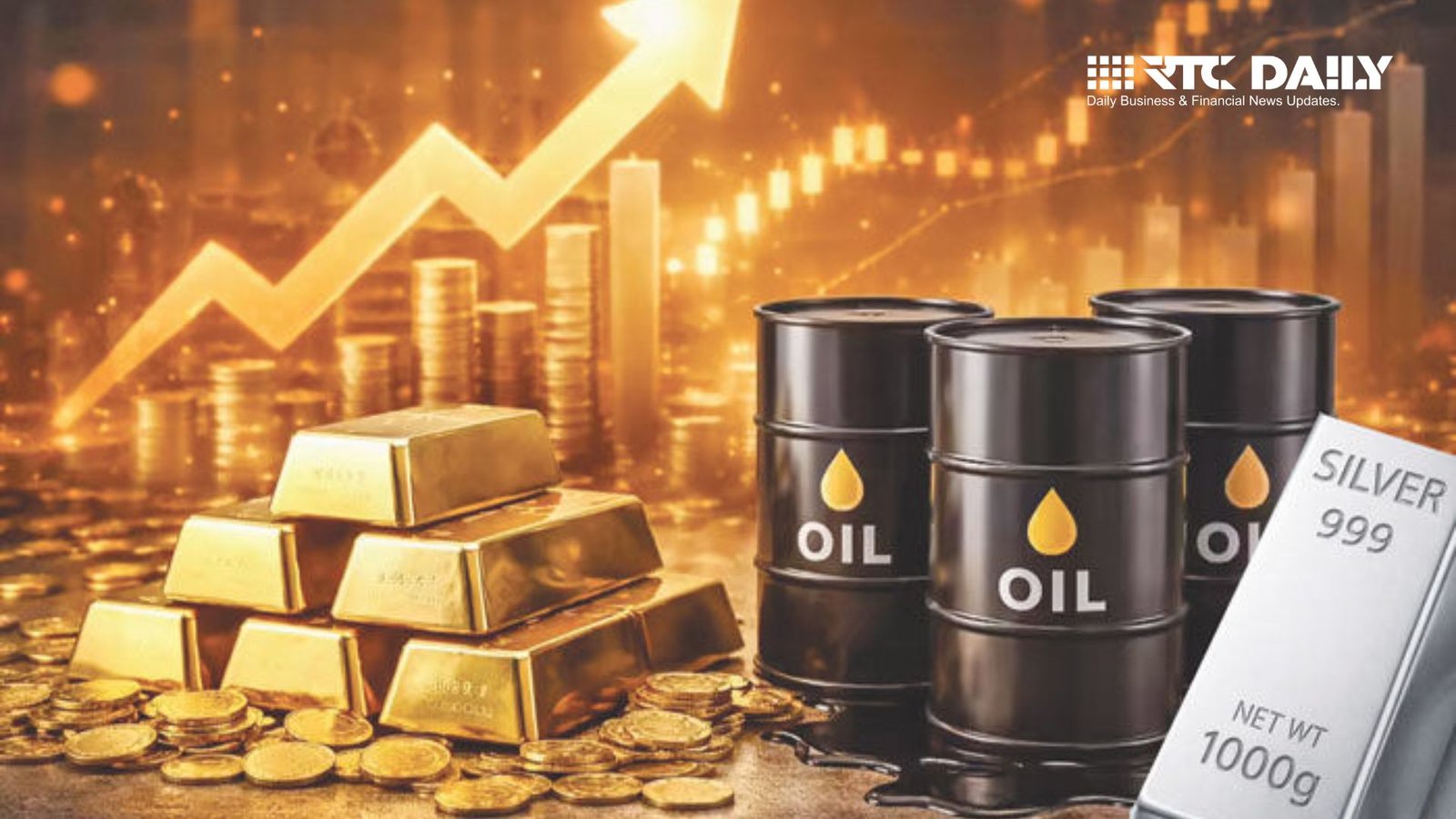 आज सोना-चांदी और कच्चे तेल (क्रूड) की कीमतों में जबरदस्त तेजी दर्ज की गई। वहीं रुपया कमजोर होने से डॉलर 91 रुपये के पार पहुंच गया।